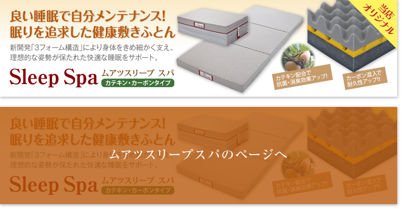 整圧敷きふとんは、へたりにくく、耐久性があるので最低6〜8年間クッション性を維持するので経済的です。